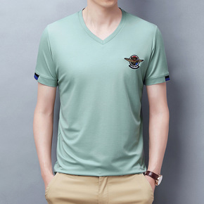 2022夏季V领短袖男士外贸时尚个性刺绣韩版半袖打...