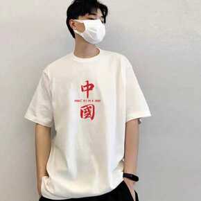 中国潮牌短袖T恤男简约百搭帅气圆领体恤半袖打底衫...