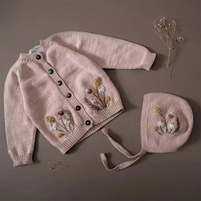 现货 ins童装手绣开衫毛衣套装帽子秋冬款宝宝打底...