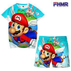 现货短裤短袖套装男女童休闲动漫马里奥短袖T恤夏季多...