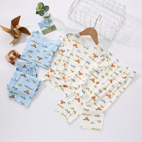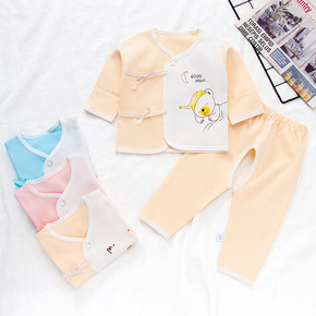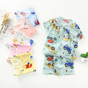 新生儿卡通纯棉翻袖家居服两件套婴儿无骨开档空调服宝...