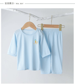 新款纯色儿童套装无袖T恤大中小童家居服背心无袖 七...