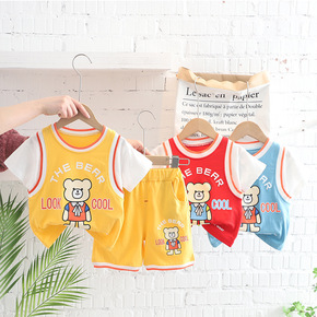 儿童背心套装棉夏季新款俩件套男童帅气恐龙无袖T恤短...