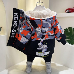 2021新款儿童加厚休闲棉袄男童冬季洋气中长款棉服...
