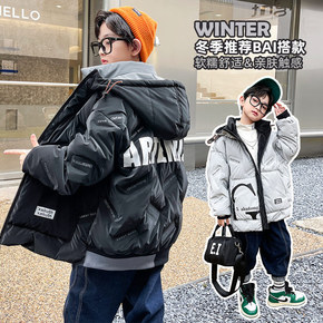 男童棉衣冬季亮面儿童羽绒棉服中大童加厚保暖棉袄背包...