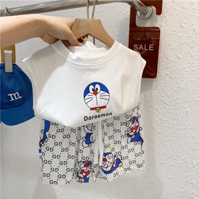 潮童夏季新款短袖套装儿童卡通印花T恤夏装男童卡通两...