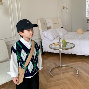 儿童背心男女童2022春装菱格针织V领马甲宝宝气质...