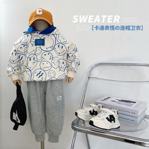 儿童套装2022眯眯眼春季新品男女童字母连帽套装宝...