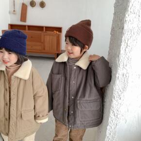 韩国童装儿童冬季新款羊羔毛夹棉棉衣男女童宝宝棉服中...
