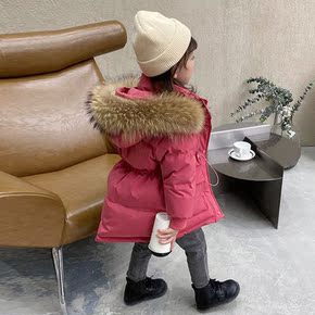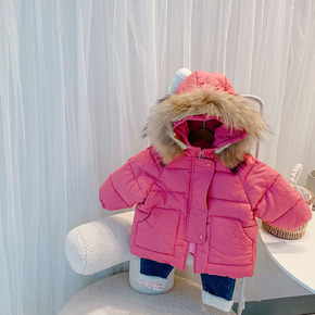 女童真毛领羽绒棉衣外套冬季新款小童韩版连帽加厚保暖...