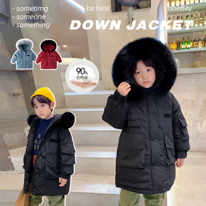 儿童羽绒服白鸭绒中长款冬装宝宝保暖男童外套加厚上衣...