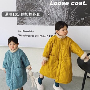 韩国童装同款儿童冬季新款夹棉棉衣男女童宝宝中长款绗...