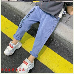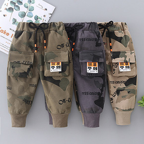 棉质童装男童弹力休闲裤工装裤春秋装束脚裤子儿童中大...