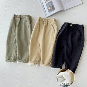 新品儿童裤子洋气3男孩休闲裤加绒加厚4男童冬装外穿...