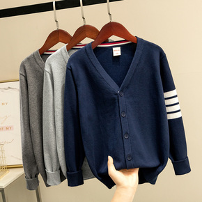儿童针织开衫春款中小童韩版毛衣针织衫男童拼色V领薄...