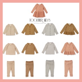 2021年秋冬女童针织裙条纹针织裤套装 男童圆领针...