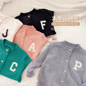 儿童字母针织衫0-6岁春秋季男宝宝简约长袖上衣女童...
