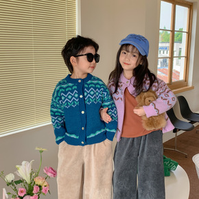 儿童亲子针织毛衣开衫 2021童装新款男童女童宝宝...