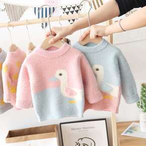 儿童毛衣女童毛衣裙秋冬装洋气儿童仿水貂绒加绒小女...