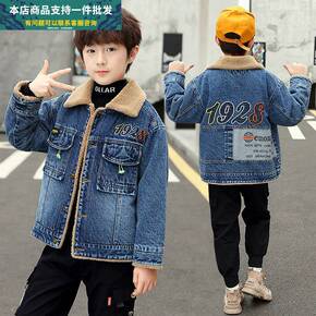 男童棉衣加厚外套男童加绒牛仔外套中大童秋冬款帅气2...