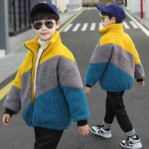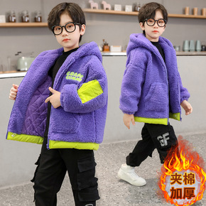 男童冬装加绒加厚颗粒绒外套2021新款中大童保暖羊...