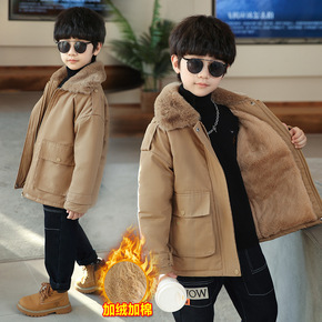 男童冬装加绒棉衣外套中大童冬季加厚保暖棉袄儿童毛领...