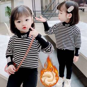 儿童高领毛衣2021加厚间条雪尼尔加绒三色秋冬韩版...