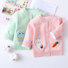 婴儿毛衣开衫加绒加厚棉秋冬新生儿洋气宝宝男女针织衫...