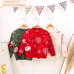 女童圣诞毛衣男女童韩版针织毛衣秋冬新款针织衫宝宝套...