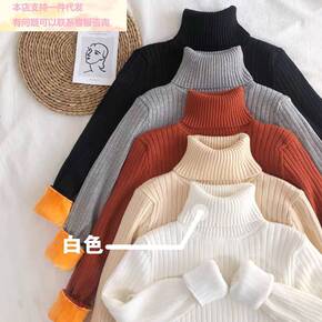 儿童毛衣专柜品质加绒加厚高领女秋冬毛衣纯色修身保暖...