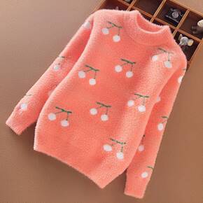 儿童毛衣女童毛衣2021新款加绒加厚水貂绒儿童毛衣...