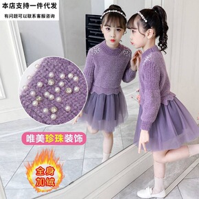 儿童毛衣女童秋冬新款儿童加绒毛衣裙中大童洋气公主...