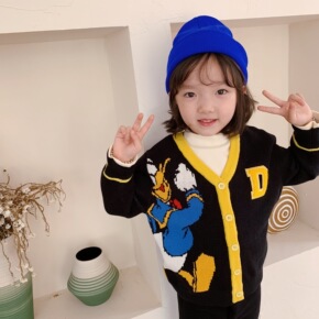 男女儿童宝宝纯棉开衫外套可爱卡通鸭子造型毛衣潮童上...