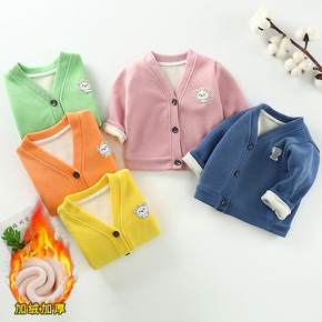 儿童加绒外套冬季女童针织衫开衫男童毛衣宝宝保暖上衣...