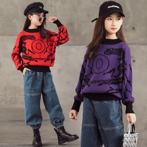 女童羊毛衫冬季2020新款中大童个性时髦圆领宽松长...