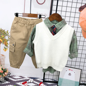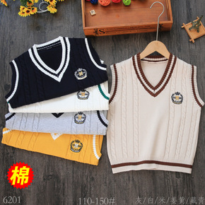 现货韩国童装21秋款男女宝宝V领麻花针织套头背心马...