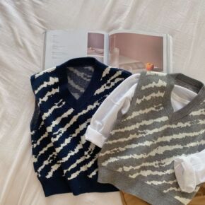 儿童毛衣2021眯眯眼秋季新品男女童撞色波纹马甲宝...