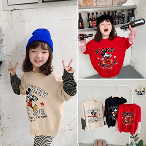 2021春夏卡通提花假两件潮范针织衫宽松版男女童针...