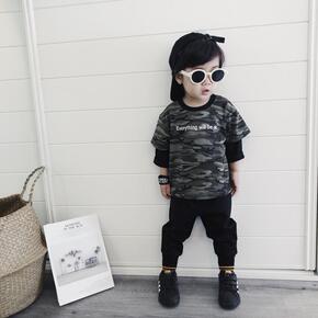 男童迷彩卫衣2021春秋国潮童装中小童长袖t男孩上...