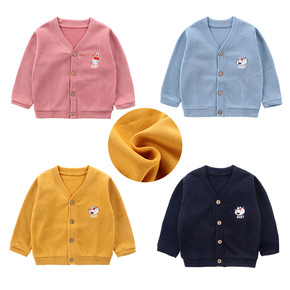 新款儿童针织衫 长袖开衫休闲纯色v领宝宝卫衣外套婴...