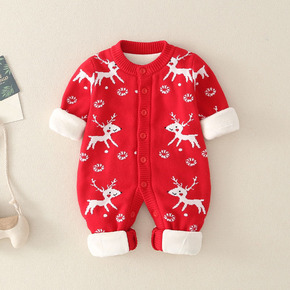 婴儿毛衣秋冬衣服套装可爱加厚3-6个月男女宝宝连体...