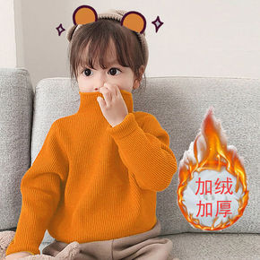 女童毛衣2021年新款冬装加绒打底加厚保暖高领中长...