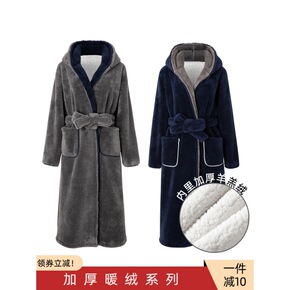 【断码清仓】秋冬季珊瑚绒法兰绒睡袍女男加厚情侣浴袍...