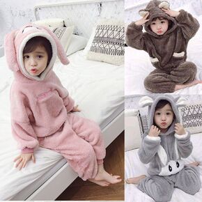包邮款男女宝宝春秋珊瑚绒家居服小女童秋冬季法兰绒睡...