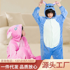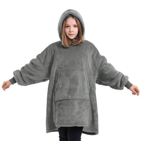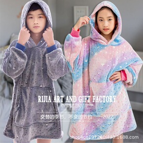 跨境现货冬季保暖儿童连帽卫衣睡衣睡毯法兰绒连体懒人...