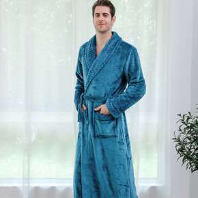 酒店浴袍冬季珊瑚绒睡袍男冬款加绒长款法兰绒男士保暖...