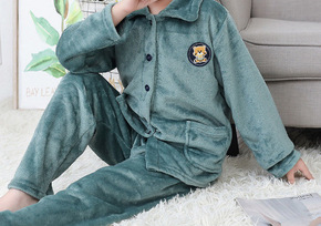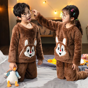 儿童法兰绒睡衣秋冬季男女童宝宝加厚家居服套装中大童...