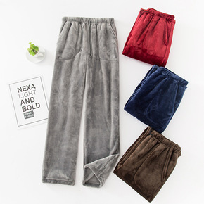 珊瑚绒裤子懒人家居男绒裤外穿冬季老年人法兰绒睡裤加...