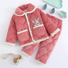 儿童冬季加厚夹棉睡衣绒男童女童加绒保暖珊瑚绒厚家居...