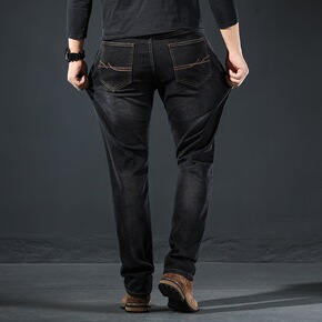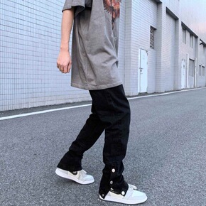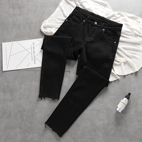 简单版型毛边牛仔裤男韩版潮流黑色修身小脚裤休闲百搭...